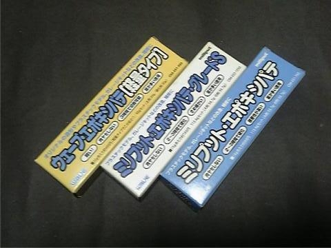 こちらも、主剤に硬化剤を混ぜて使うタイプ。主剤に対して硬化剤2%です。粘度、接着力ともに瞬着とポリパテの中間くらい。硬化時間は気温にもよりますが、冬でも数時間で加工可能です。半硬化位の時の切削性がとてもよいので(癖になる程w)、ディテールを追加する時や、各部補強時によく使っています。完全硬化するとなかなかの硬度。